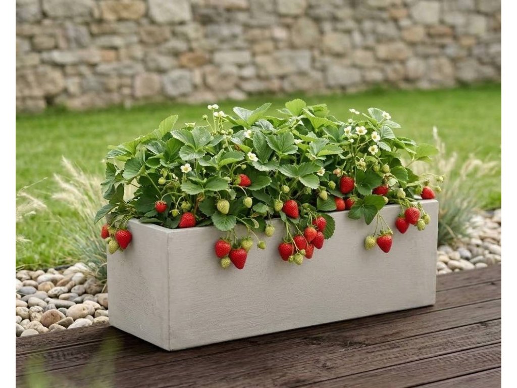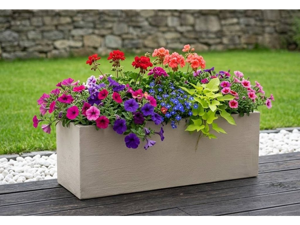 Nachahmung eines Beton-Pflanzgefäßes mit echter Betonoberfläche. Die Grundkonstruktion besteht aus einer wasserfesten OSB-Platte, die mit einer speziellen Grundierung ausgeschäumt und mit einer anthrazitfarbenen Betonkelle beschichtet ist, in die ein selbstbewässerndes Pflanzgefäß eingelassen ist. Auf den Betonestrich wird ein spezieller Schutzlack aufgetragen. Außenmaße 53x22,5x17,5 cm. Innenmaße 50x19,5x17,5 cm. Zum Produkt gehört ein selbstbewässernder Kasten mit den Maßen 50x19x16,5 cm, der gut in die Verpackung passt und hält. Das Produkt wiegt nur 3,7 kg und ist damit deutlich leichter als ein Vollbetonkasten, d.h. es ist viel einfacher zu handhaben, aber optisch nicht von Beton zu unterscheiden. Der Topf ist nicht für Umgebungen mit Frost-Feuchtigkeits-Kombinationen und auch nicht für dauerhaft feuchte Umgebungen geeignet. Ein großer Vorteil gegenüber einem Betonprodukt ist die einfache Handhabung im Vergleich zu einem Betonprodukt, das um ein Vielfaches schwerer ist, wobei das Design eines Betonprodukts erhalten bleibt. Aus diesem Grund ist es überall dort ideal, wo schwere Gegenstände schwer zu handhaben sind. Tschechisches Produkt