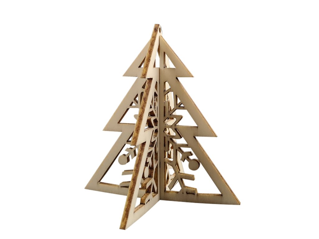 Der naturgeschnitzte 3D-Weihnachtsbaum aus Holz ist aus Pappelsperrholz gefertigt und besteht aus zwei Teilen. Der Baum wird in einem Zellophanbeutel verpackt. Die Größe der Dekoration beträgt 8 cm. Tschechisches Produkt