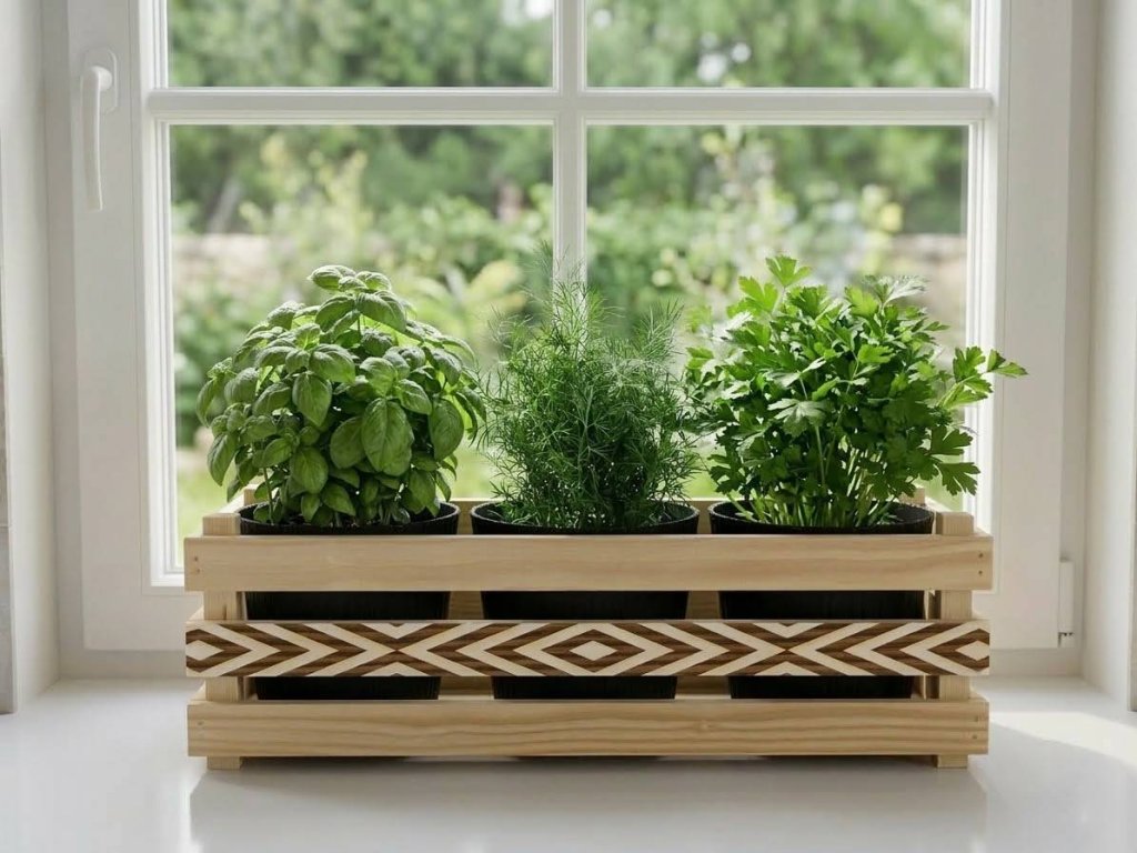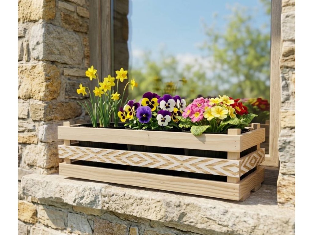 Holzverpackung mit Blumentöpfen mit Rautenmotiv, 47x17x15cm Tschechisches Produkt