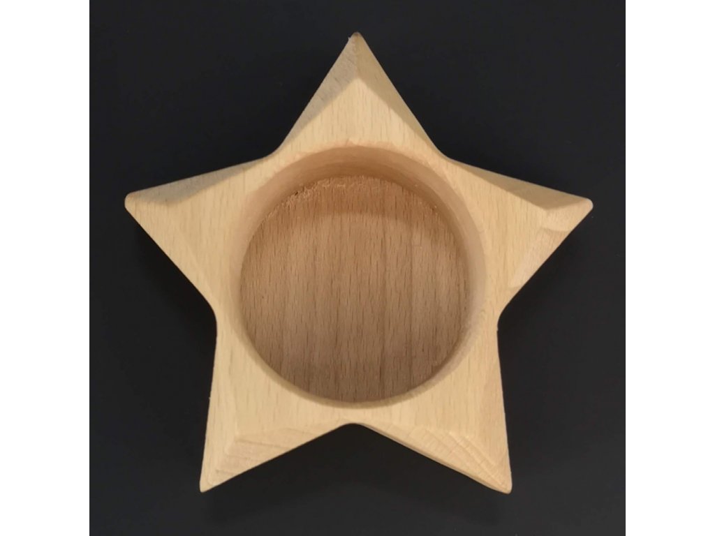 Kerzenständer aus Holz in Form eines Sterns, Massivholz, 10x3 cm