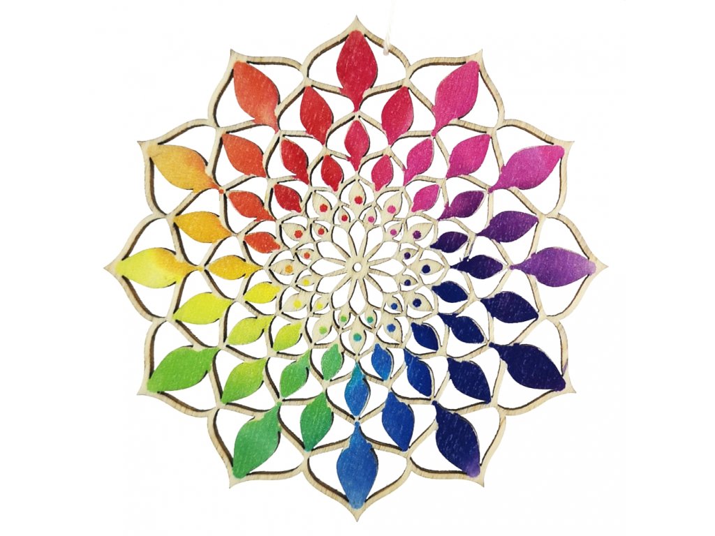 Dřevěná dekorace v podobě mandaly je ideálním doplňkem pro váš domov. Je vyrobena z kvalitního topolového překližky a její živé barvy oživí jakýkoliv prostor. Mandala může sloužit jako dekorace na stěnu nebo jako originální prvek na stole.
