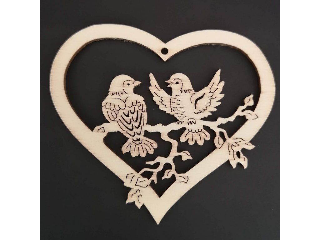 - Dřevěná ozdoba srdce s ptáčky
