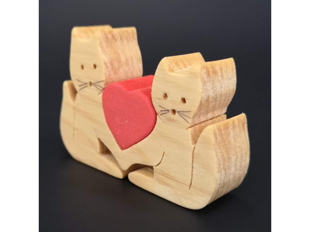 Dřevěné kočky se srdcem, masivní dřevo, 7x5x1,5 cm