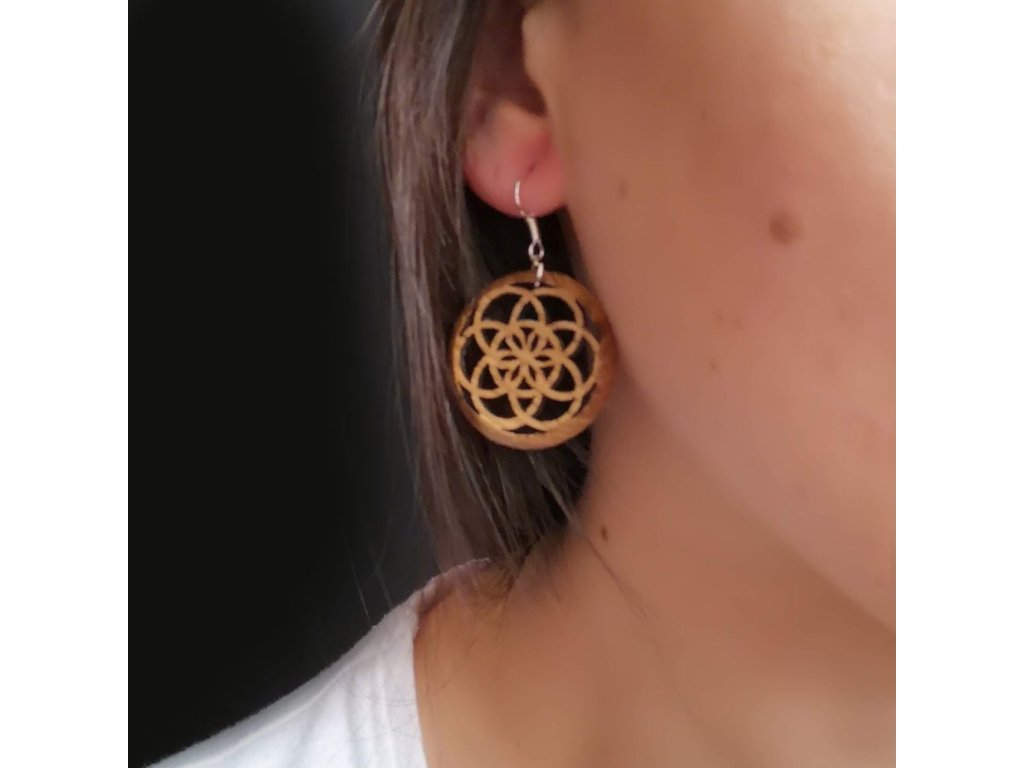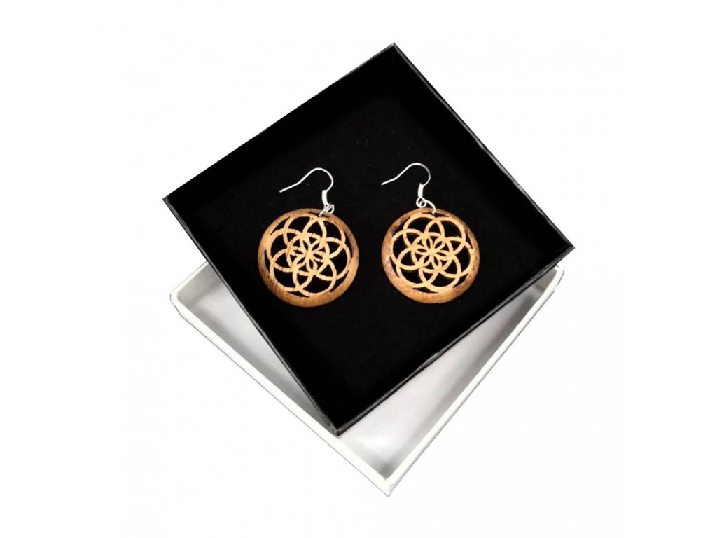 Dřevěné náušnice kulaté s prořezem mandaly jsou vyrobené z masivního dubového dřeva, rozměr je 3 cm, náušnice jsou velmi lehké a hodí se k mnoha příležitostem i na běžné nošení. Zabaleny jsou v dárkové krabičce.Doplňkové parametry