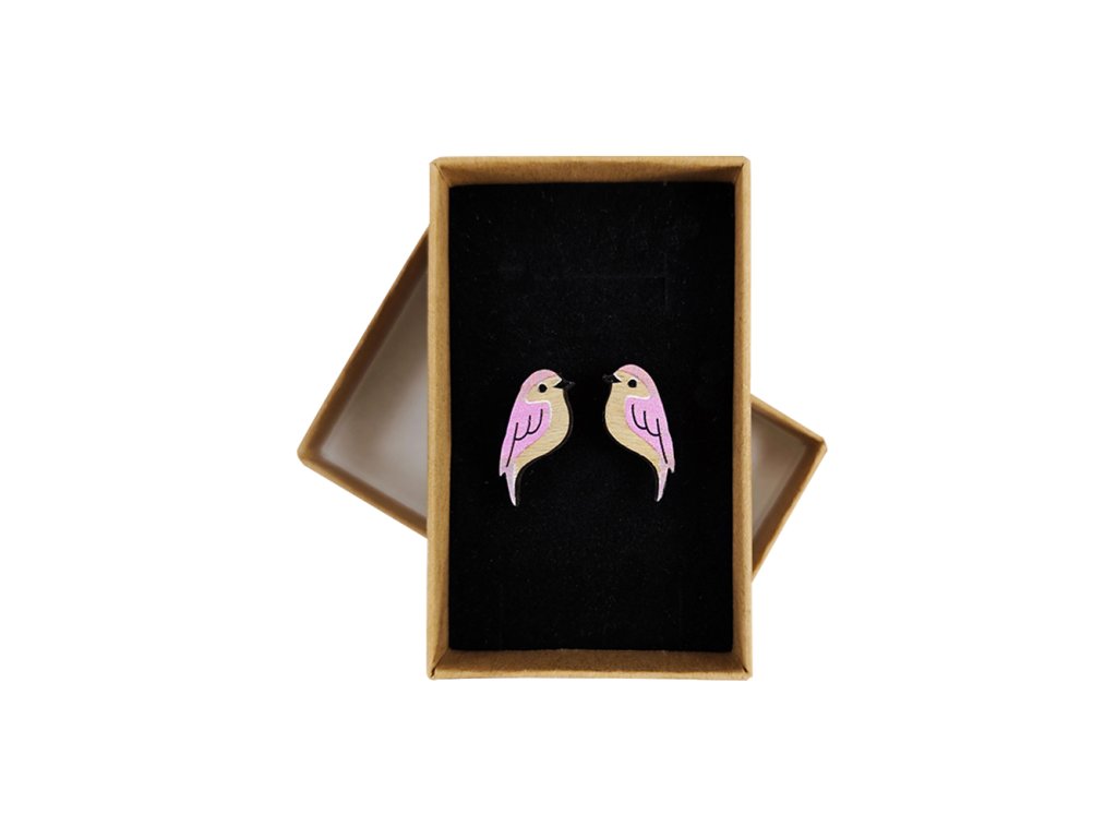Dřevěné náušnice jemné pecky ve tvaru ptáčka jsou vyrobené z bukového dřeva a barevně potištěné. Náušnice jsou velmi lehké a hodí se k mnoha příležitostem i na běžné nošení. Uchycení náušnic je z chirurgické oceli a drží náušnice bezpečně po celý den. Jejich nošení je maximálně pohodlné. Zabaleny jsou v dárkové krabičce. Rozměr je 2 x 1 cm. Český výrobek.