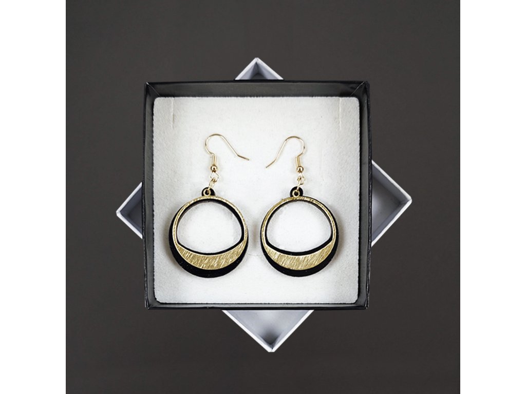 Dřevěné náušnice z topolového dřeva a mosazi ve zlaté barvě. Náušnice jsou výrazné, elegantní a zároveň vkusné, hezky oživí každodenní či večerní outfit. Jejich nošení je maximálně pohodlné. Jedná se o bižuterii a náušnice jsou dodávány na kartónku, kde jsou upevněny pomocí silikonové zarážky. Rozměr je 3,5x3 cm. Český výrobek.