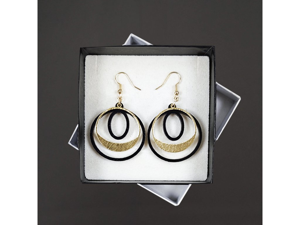 Dřevěné náušnice z topolového dřeva a mosazi ve zlaté barvě. Náušnice jsou výrazné, elegantní a zároveň vkusné, hezky oživí každodenní či večerní outfit. Jejich nošení je maximálně pohodlné. Jedná se o bižuterii a náušnice jsou dodávány na kartónku, kde jsou upevněny pomocí silikonové zarážky. Rozměr je 3,7x3,5 cm. Český výrobek.
