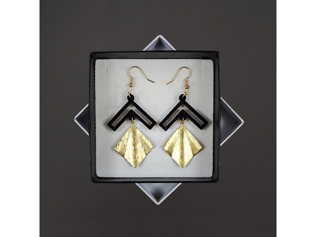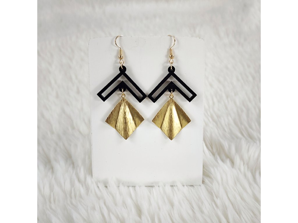 Dřevěné náušnice z topolového dřeva a mosazi ve zlaté barvě. Náušnice jsou výrazné, elegantní a zároveň vkusné, hezky oživí každodenní či večerní outfit. Jejich nošení je maximálně pohodlné. Jedná se o bižuterii a náušnice jsou dodávány na kartónku, kde jsou upevněny pomocí silikonové zarážky. Rozměr je 4,8x3,4 cm. Český výrobek.