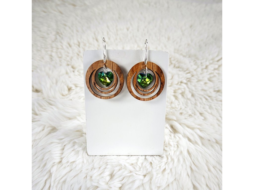 Dřevěné náušnice se skleněným broušeným kamínkem, 3,6 cm, český výrobek Náušnice jsou dodávány na kartónku, kde jsou upevněny pomocí silikonové zarážky.
