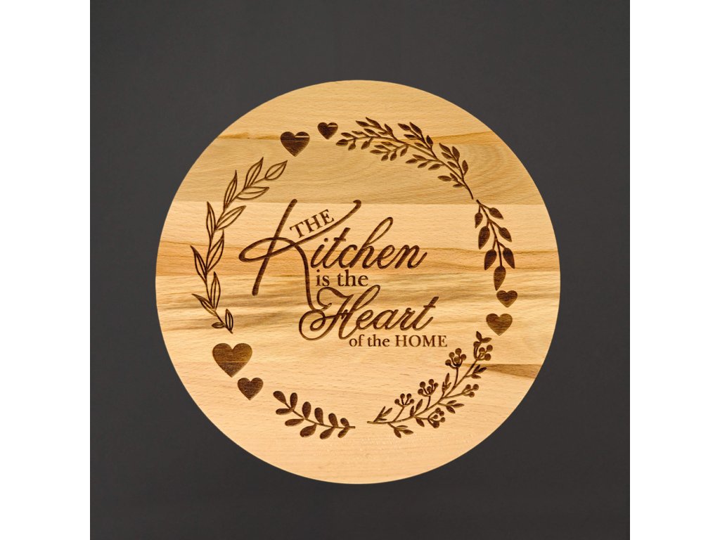 Stylové masivní bukové prkénko, které poslouží jako servírovací podnos je vyrobené z masivního bukového dřeva. Prkénko - podnos je vkusným doplňkem každé kuchyně, stejně tak může posloužit jako krásný dárek. Ozdobené je gravírem s motivem větviček a srdíček. Prkénko je na povrchu ošetřeno přírodním olejem. Rozměr je 25 cm