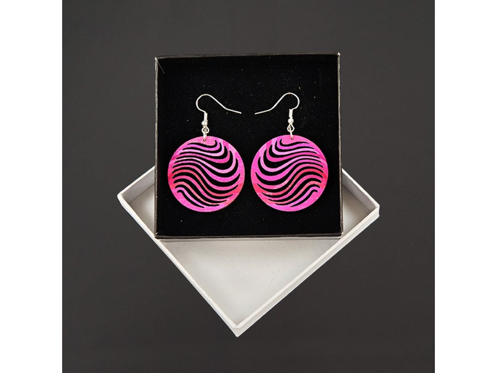 Dřevěné náušnice z topolového dřeva a barevně potištěné. Náušnice jsou výrazné, elegantní a zároveň vkusné, hezky oživí každodenní či večerní outfit. Jejich nošení je maximálně pohodlné. Jedná se o bižuterii a náušnice jsou dodávány na kartónku, kde jsou upevněny pomocí silikonové zarážky. Rozměr je 3,5x3,5 cm. Český výrobek.