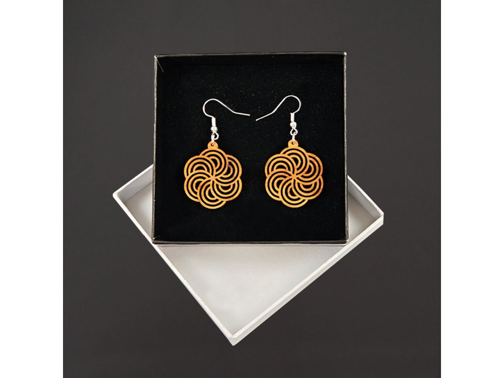 Dřevěné náušnice z topolového dřeva a namořené na hnědo. Náušnice jsou výrazné, elegantní a zároveň vkusné, hezky oživí každodenní či večerní outfit. Jejich nošení je maximálně pohodlné. Jedná se o bižuterii a náušnice jsou dodávány na kartónku, kde jsou upevněny pomocí silikonové zarážky. Rozměr je 3x2,5 cm. Český výrobek.