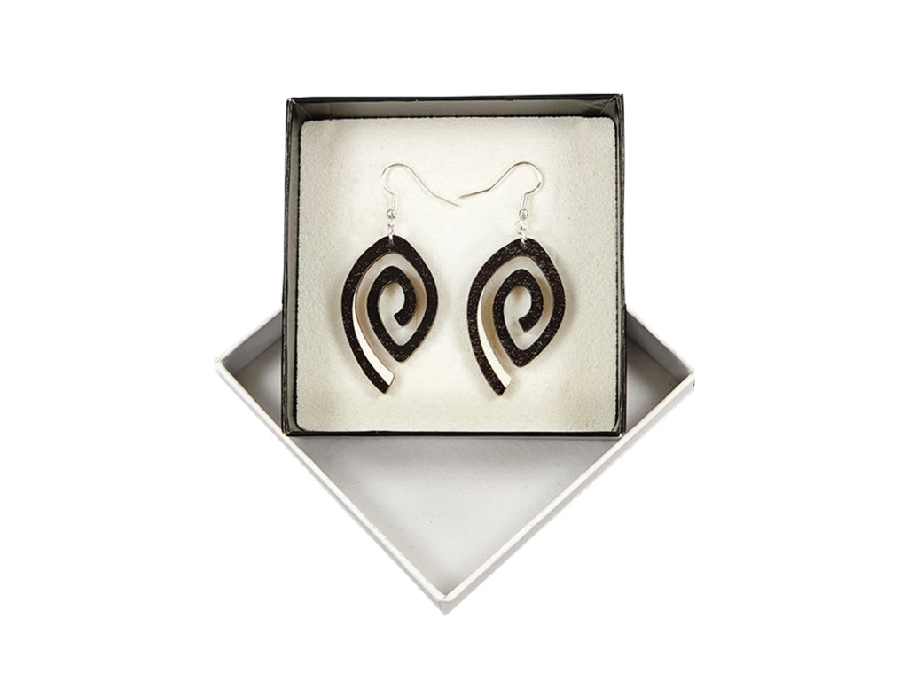 Dřevěné náušnice z topolového dřeva a barevně potištěné. Náušnice jsou výrazné, elegantní a zároveň vkusné, hezky oživí každodenní či večerní outfit. Jejich nošení je maximálně pohodlné. Jedná se o bižuterii a náušnice jsou dodávány na kartónku, kde jsou upevněny pomocí silikonové zarážky. Rozměr je 4x2,5 cm. Český výrobek.