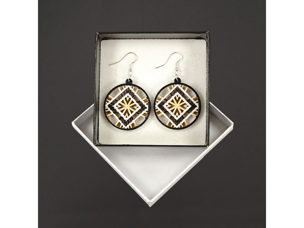 Dřevěné náušnice z topolového dřeva a barevně potištěné. Náušnice jsou výrazné, elegantní a zároveň vkusné, hezky oživí každodenní či večerní outfit. Jejich nošení je maximálně pohodlné. Jedná se o bižuterii a náušnice jsou dodávány na kartónku, kde jsou upevněny pomocí silikonové zarážky. Rozměr je 4x3,6 cm. Český výrobek.