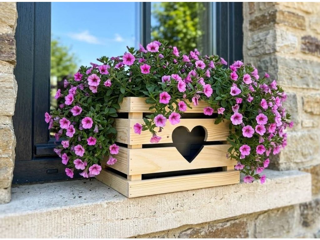 Dřevěný obal na květináč je vyrobený z masivního smrkového dřeva bez povrchové úpravy. Uprostřed je vyříznuté srdíčko. Vnější rozměr 27x27x20 cm. Vnitřní rozměr 25x25x20 cm. Vhodné pro samozavlažovací květináč o rozměrech 25x25x20 cm, který dobře zapadne a drží v obalu na vnitřní dřevěné příčce. Vhodný květináč naleznete v naší nabídce pod kódem 39974. Květináč není součástí balení. Český výrobek.