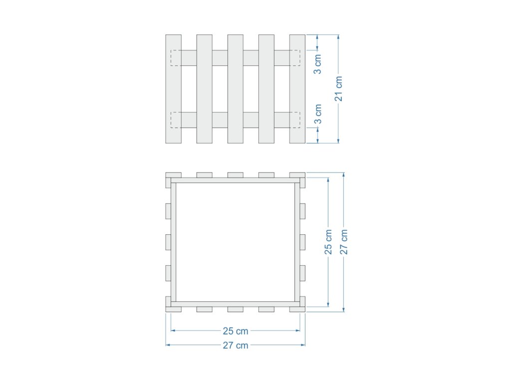 Dřevěný obal na květináč je vyrobený z masivního smrkového dřeva a namořený. Vnější rozměr 27x27x21 cm. Vnitřní rozměr 25x25x21 cm. Vhodné pro samozavlažovací květináč o rozměrech 25x25x20 cm, který dobře zapadne a drží v obalu na vnitřní dřevěné příčce. Vhodný květináč naleznete v naší nabídce pod kódem 39974. Květináč není součástí balení. Není určené pro přímý styk s vodou. Český výrobek.
