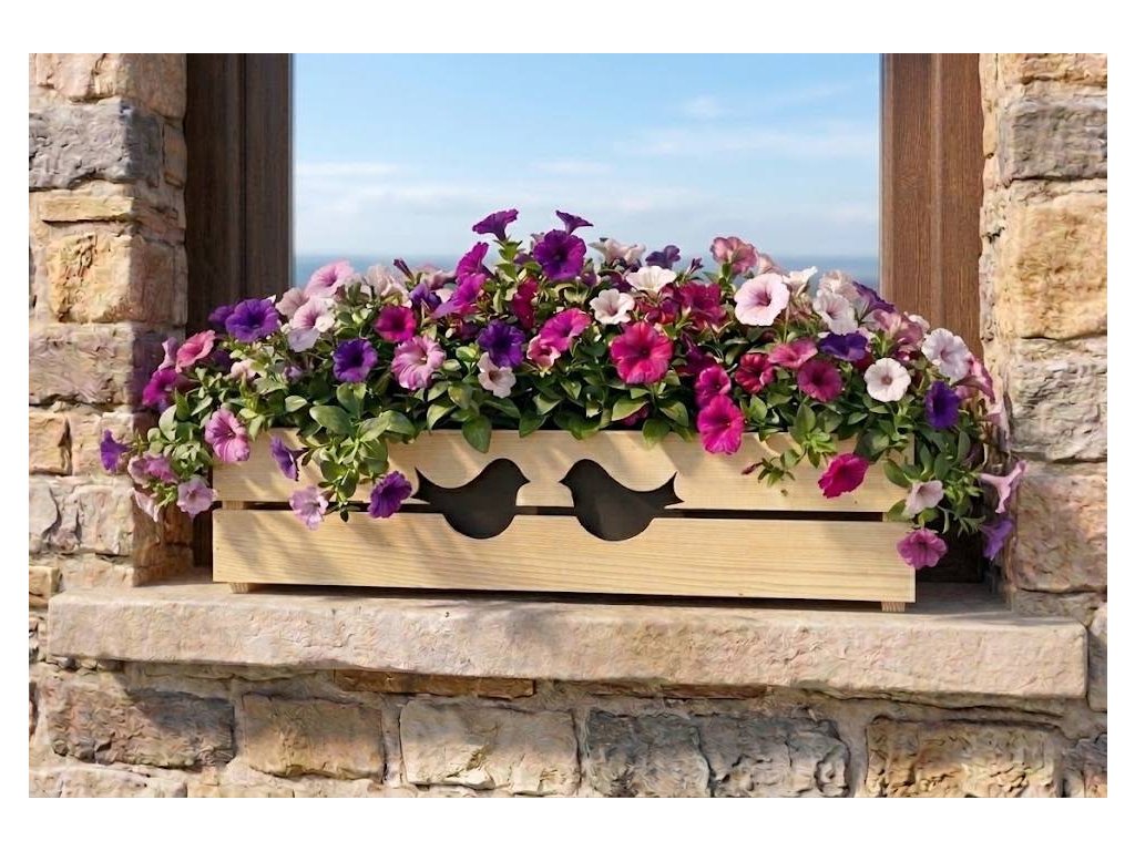 Dřevěný obal na truhlík s ptáčky, 62x21,5x17cm, český výrobek