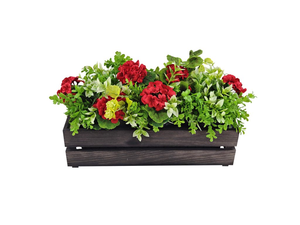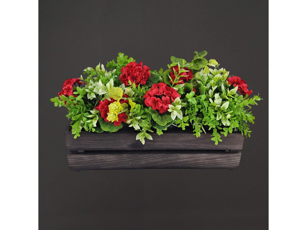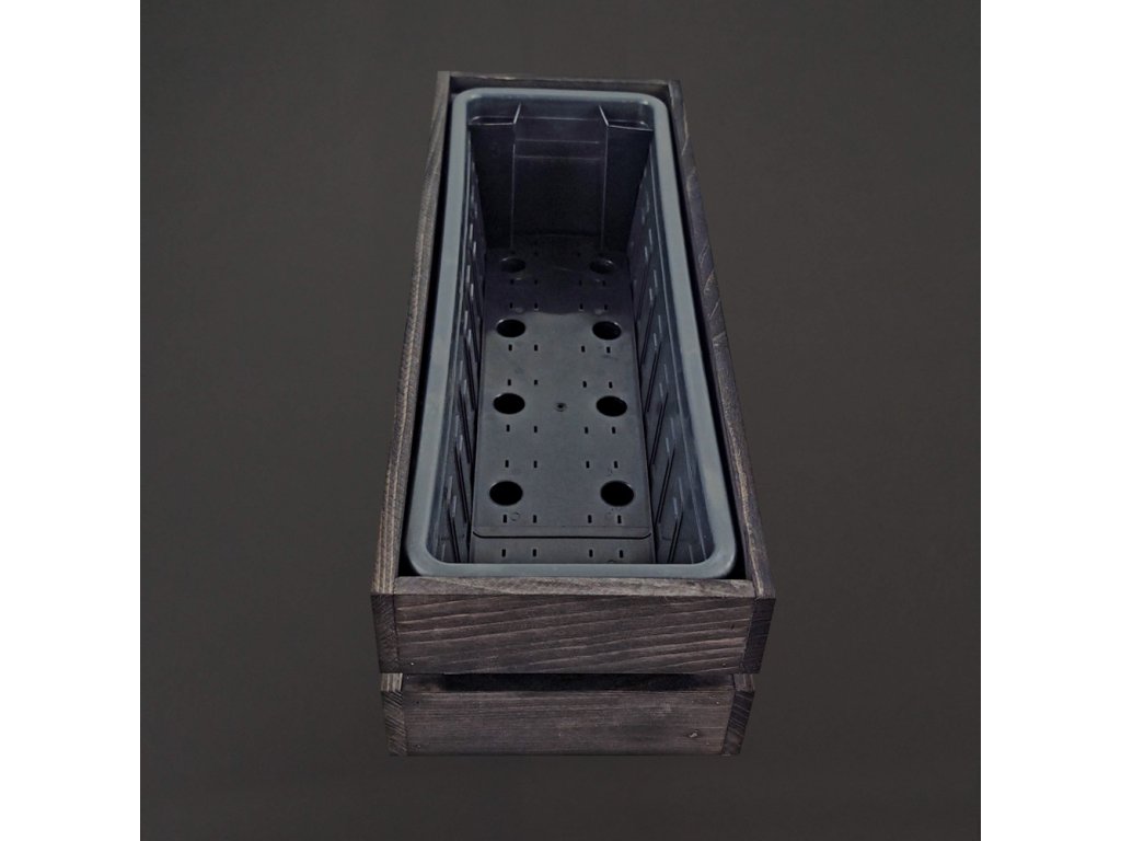 Dřevěný obal s truhlíkem je vyrobený z masivního smrkového dřeva a je namořený. Vnější rozměr je 51,1x19,6x15 cm. Součástí výrobku je samozavlažovací truhlík o rozměrech 49x16,5x15 cm. Truhlík můžete osázet letničkami nebo bylinkami. Díky dělícímu roštu disponuje truhlík prostorem pro zásobu vody. Mantinely vymezují místo pro pohodlné dolévání zálivky. Přiloženou trubičkou jednoduše zjistíte stav hladiny vody v zásobníku. Český výrobek.