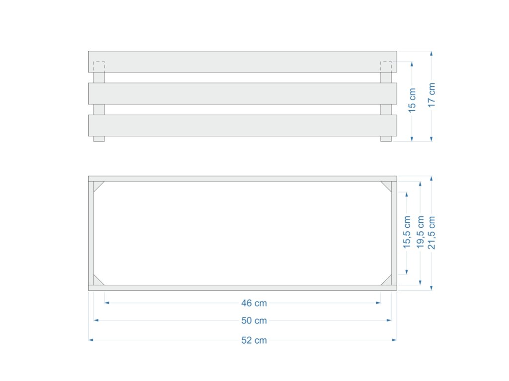 Dřevěný obal s truhlíkem je vyrobený z masivního smrkového dřeva a namořený na hnědo. Vnější rozměr 52x21,5x17cm. Vnitřní rozměr 50x19,5x15cm. Součástí výrobku je samozavlažovací truhlík o rozměrech 50x19x16,5 cm, který dobře zapadne a drží v obalu.Není vhodné pro přímý styk s vodou. Český výrobek.