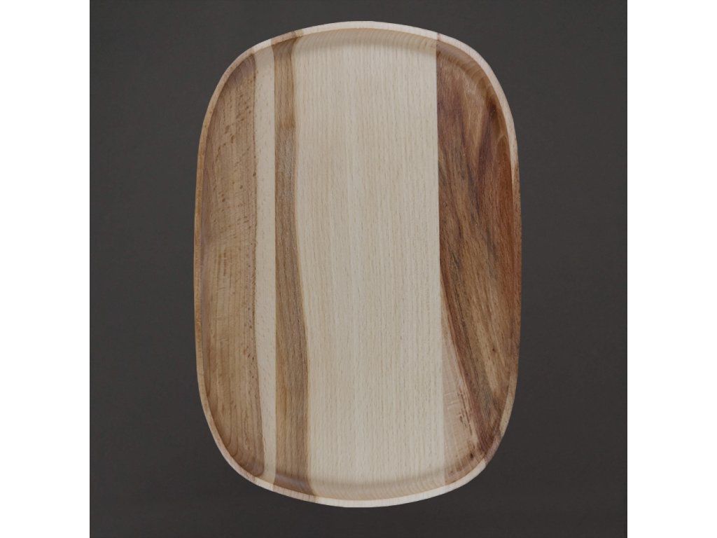 Stylový dřevěný podnos je vyrobený z masivního bukového dřeva. Dřevo je na povrchu ošetřeno přírodním olejem. Podnos je ideální na ovoce, sladkosti, hlavní chod, servírování nápojů a podobně. Délka podnosu je 25 cm a šířka je 17 cm
