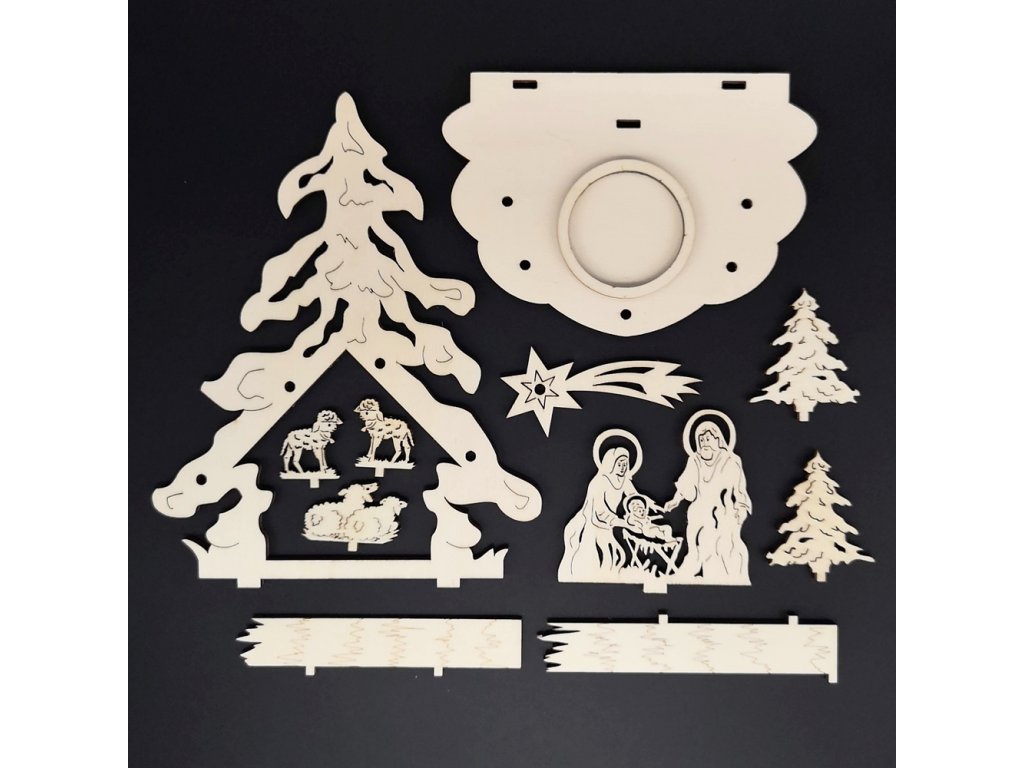 Dřevěný přírodní svícen ve tvaru betlému je vyrobený z překližky topolu. Rozměr je 19 cm. Dekorace se skládá z několika částí, které jsou zabaleny v sáčku a složení je velmi snadné. Ke svícnu doporučujeme přiobjednat skleněný kalíšek na čajovou svíčku - kód 71174.Doplňkové parametry