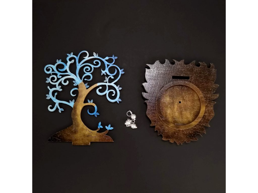 Dřevěný svícen strom modrý s bílými ozdobami, výška 10 cm