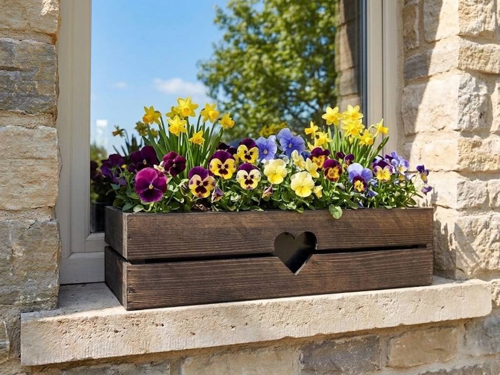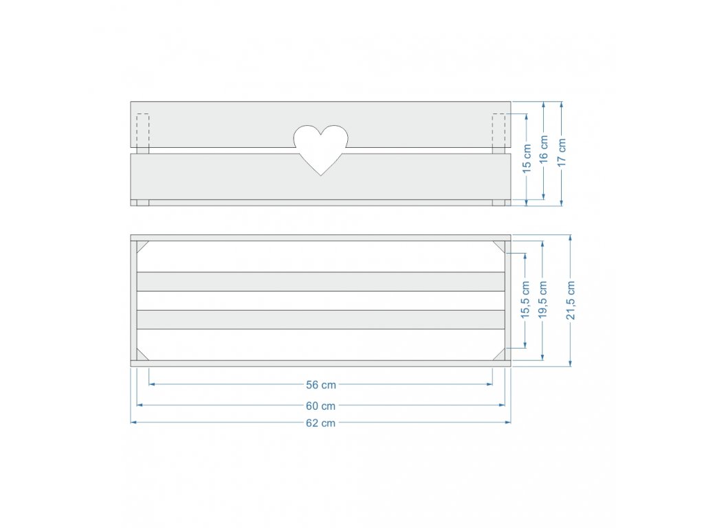 Dřevěný truhlík je vyrobený z masivního smrkového dřeva a namořený na hnědou barvu. Ve středu truhlíku je vyříznutý motiv srdíčka. Truhlík je ozdobou nejen do interiéru, ale využití nalezne i v zastřešeném exteriéru. Není určen pro přímý styk s vodou. Vnější rozměr 62x21,5x17cm. Vnitřní rozměr 60x19,5x16cm. Truhlík je uvnitř opatřen černou fólií o tloušťce 150 mikronů. Fólie je z hygienicky nezávadného koextrudovaného polyethylenu. Jedná se o 3-vrstvou vyfukovanou fólii LDPE, která je velmi pevná a nahrazuje tak běžně vkládáný plastový truhlík. Český výrobek