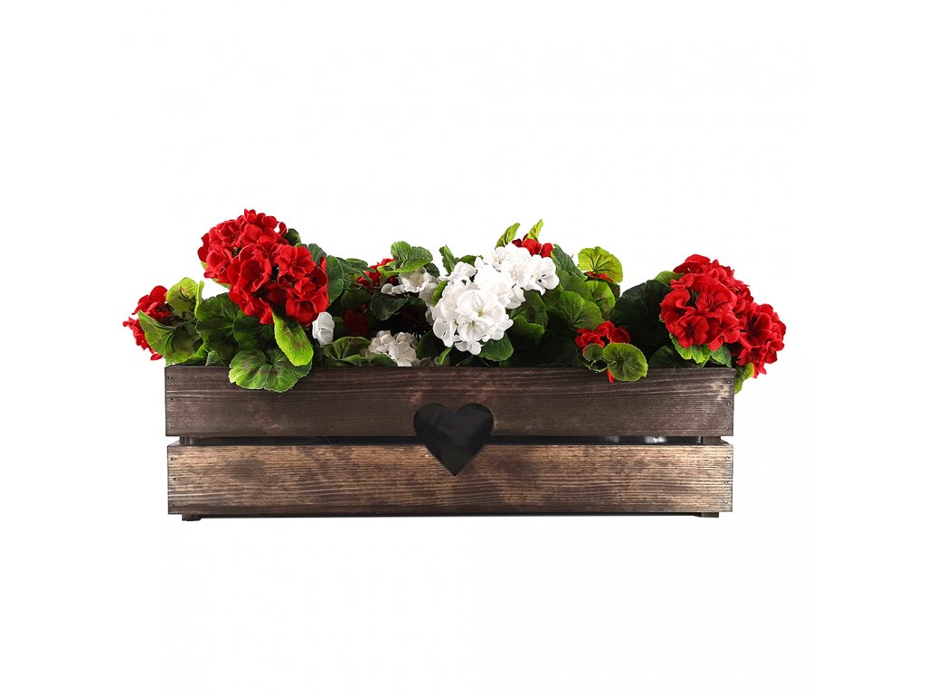 Dřevěný truhlík se srdíčkem tmavý, uvnitř s černou fólií, 62x21,5x17cm, český výrobek