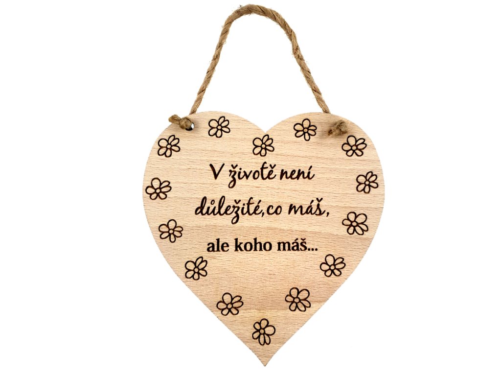 Wooden heart with text In life it's not important what you have but..., solid wood, 16 x 15 cm
