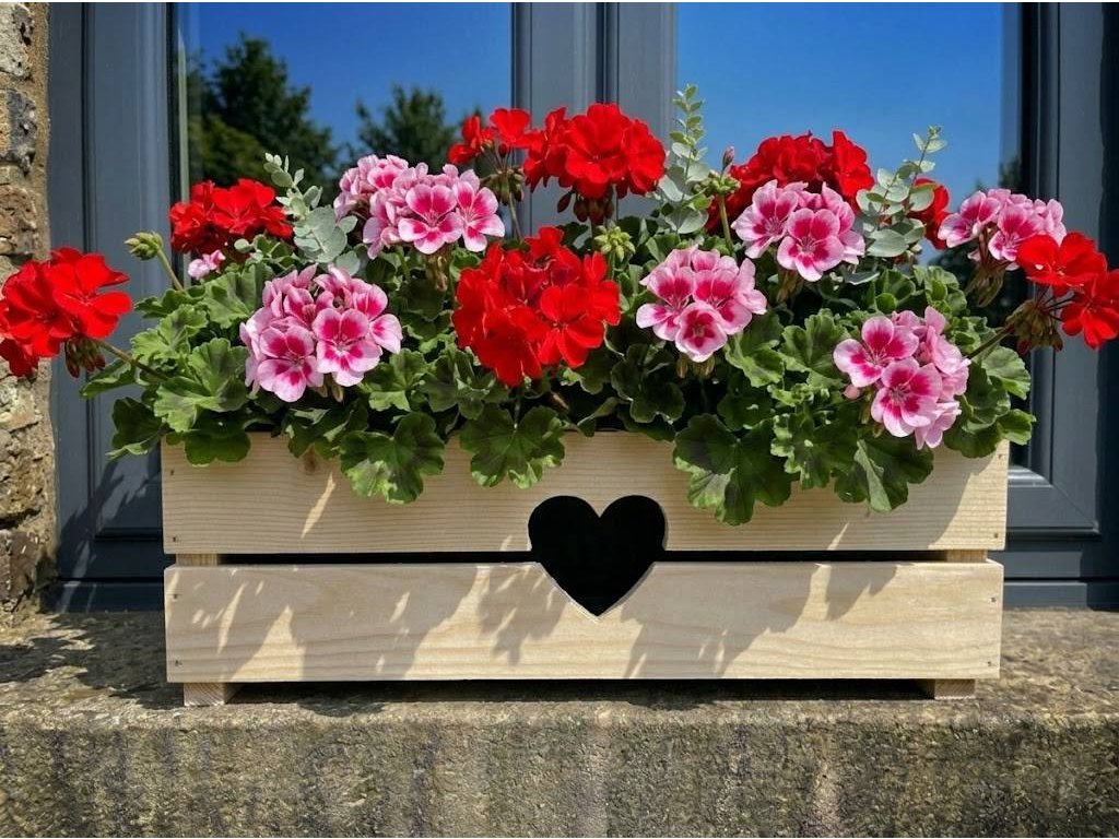 The wooden box cover is made of solid spruce wood without finish. There is a heart cut out in the middle. Outside dimensions 52x21,5x17cm. Inner dimension 50x19,5x15cm. Suitable for a self-watering box measuring 50x19x16.5, which fits well and is held in its packaging on the inner wooden partition. You can find a suitable chest in our offer under the code 41122. The chest is not included. Product of the Czech Republic.
