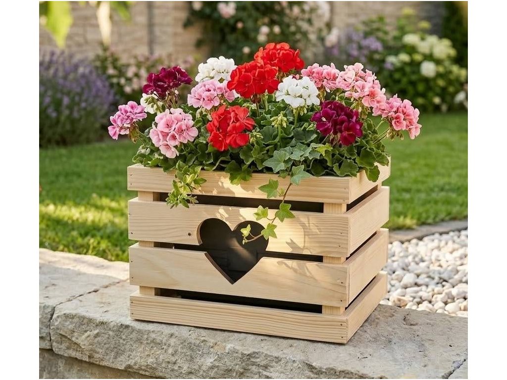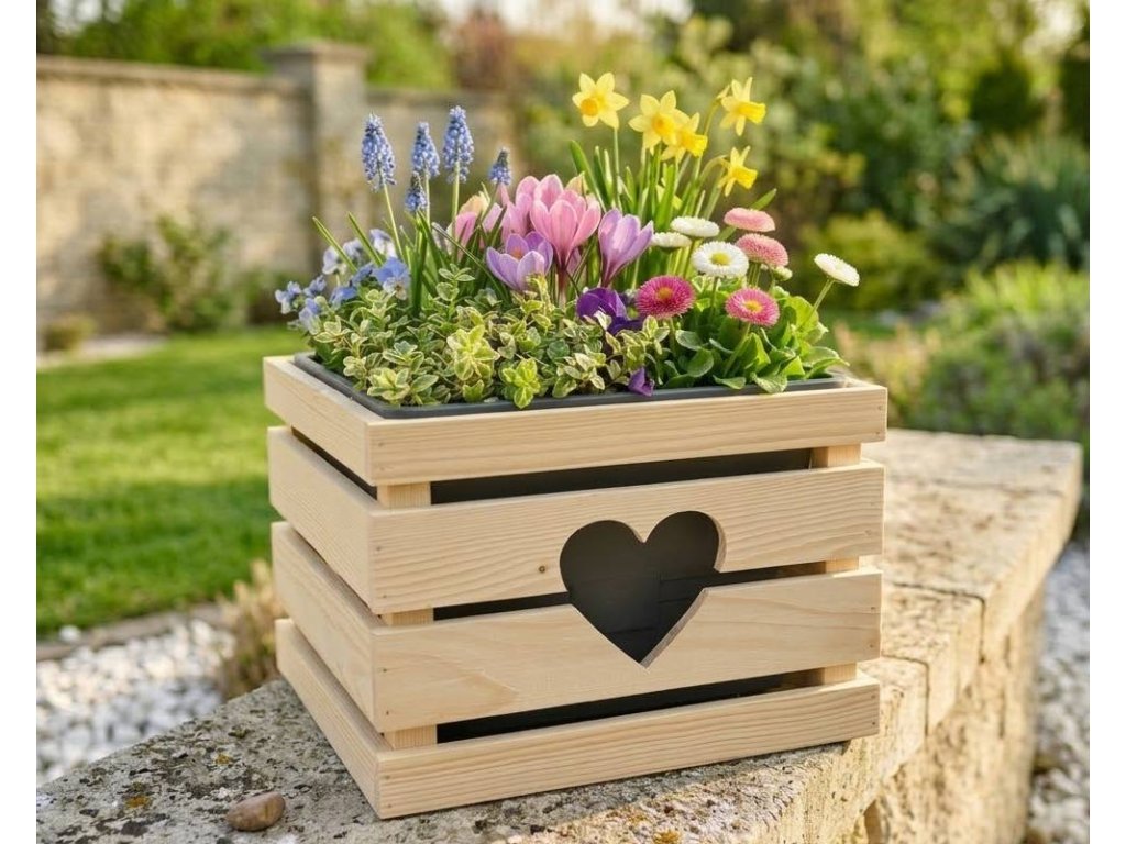 Wooden packaging with a heart with a flower pot, 27x27x20 cm Czech product