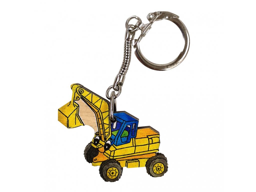 Dřevěná klíčenka bagr, 4 cm